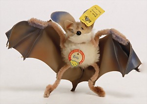 Konv., Schuco Biego Bello, Bär mit Stimme, mit Schild, Kopf nachtr. befestigt, Schuco Panda Bär, mit Stimme, 1 Schuco Bär Biego Bello gelb, mit Schild, guter Zust., 2 kl. Bären Karl, Kunststoff, 1 Steiff Foxy, kompl., Nr. unleserlich, 1 Trachtenpuppe, Kunststoff