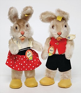 2 Teile, Hasenpaar, Bib, kompl., Nr. 8312.70, Bibie, kompl., Nr. 8312.80, ein wenig verstaubt, sonst gut