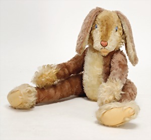 Lulac, Hase, ohne Ohren, 48 cm, (außergew. Gr.), mit Knopf, Reste gelber Fahne, etwas eingestaubt, guter Zust.