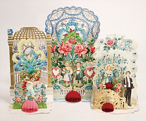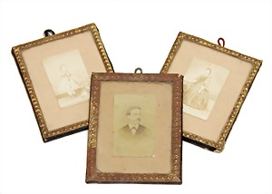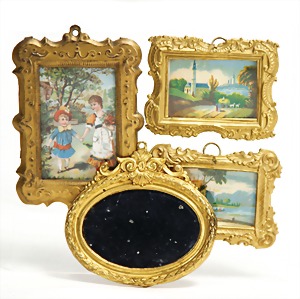 3 frühe Puppenstuben-Bilder, 6 cm hoch, 5 cm breit