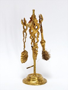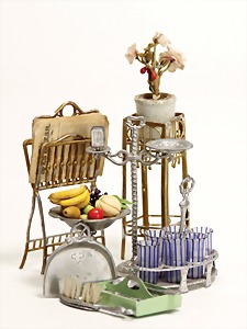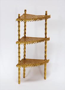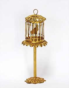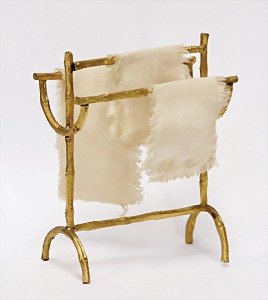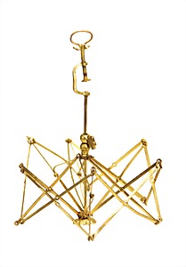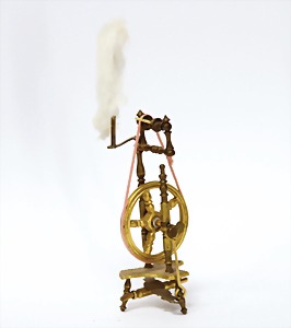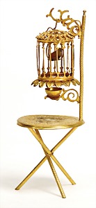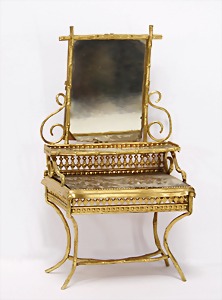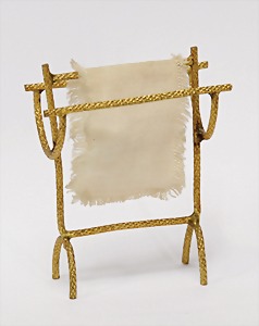 Messing/Blech vergoldet, Wäschespinne, mit Tischhalter, etwas verbogen, muss gerichtet werden, absolut selten