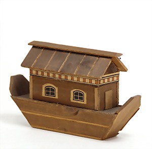 Hutladen, Holz, ca. 1940, mit 2 Figuren, 36,5 cm breit, 26,5 cm hoch