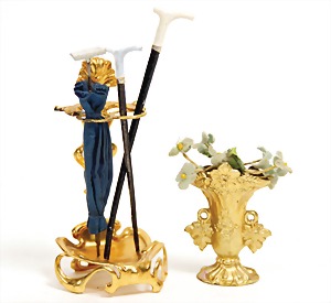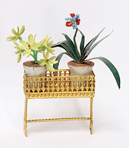 Gold/Blech, Blumenbank, 6,5 cm, mit 2 Pflanzen