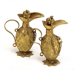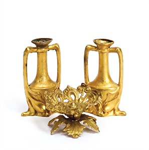 Gold/Blech, 2 Vasen, 3,5 cm, kl. Tischschale