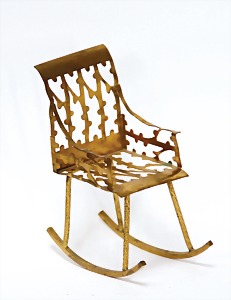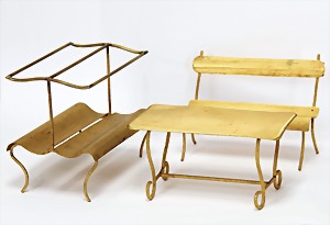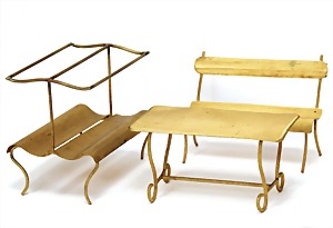 Gold/Blech, Eckbank, 9 cm breit, teilw. etwas angelaufen, Bezug fehlt, 2 Sessel, 1 Stuhl