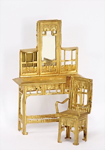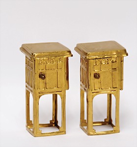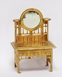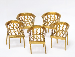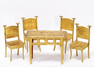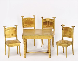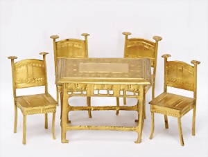 Gold/Blech, Sitzgruppe, 4 Stühle, mit Tisch, Tischplatte 8 x 5,5 cm