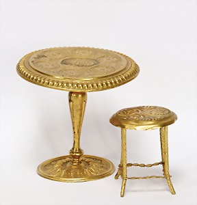 Gold/Blech, 2 Teile, Tisch, Durchm. 7 cm, 1 Hocker, Höhe 4 cm