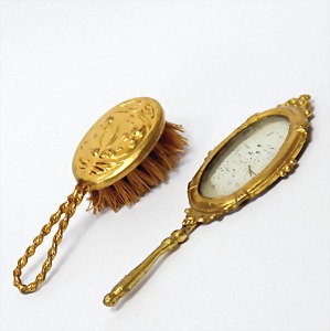Gold/Blech, 2 Teile, Spiegel, 7 cm, 1 Bürste, 5,5 cm