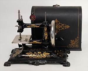 Kinder-Nähmaschine, schwere Gussausführung, 29 cm, Dekor in gutem Zust., mit Abdeckhaube