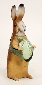 Osterhase, Papiermaché, Candy-Container, mit Ei in der Schürze, 22 cm