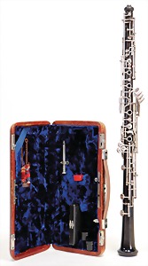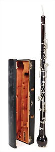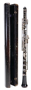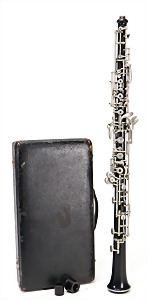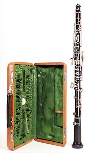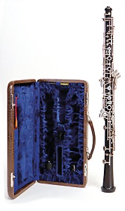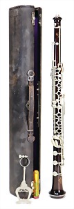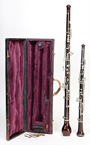 Paris, Englischhorn aus Königsholz, 80 cm, Triébert-System Nr. 4, Neusilberklappen, Signatur auf allen 3 Teilen, zw. 1843 u. 1881, Holz Zust. 1, Mechanik Zust. 1, in Doppel-Etui, Paris, Oboe, aus Königsholz, 56,9 cm, Triébert-System Nr. 4, Neusilberklappen, Signatur auf allen 3 Teilen, 1843–1881, in Doppel-Etui, passend mit Artikel 575, Holz Zust. 1, Mechanik Zust. 1 #575 576#