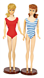 2x Ponytail- Barbie, Nr. 6, rothaarig, Orig.-Frisur, u. 1x blond, bespielt, Frisur aufgegangen