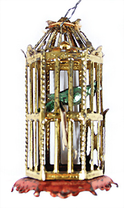 Konv. Weihnachtsschmuck, 2 Laternen, Blech, einige Teile Gablonz, einige Teile leonische Drähte, 1 Vogelkäfig mit Papiervogel, 1 Oblaten-Bild, Engel mit Stoffkleid