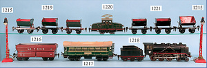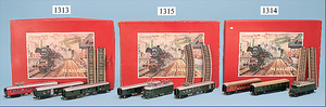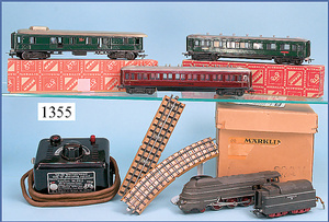 MÄRKLIN Zugpackungen, PX, mit dazugehöriger brünierter SK800, von außen keine Rissbildung erkennbar, sehr guter Zust., 3 Wagen, 351, Personenwagen 2. Klasse, Kartoffeldruck, 354, passender Gepäckwagen, sowie Mitropa Schlafwagen, Guss-Drehgestelle, Transformator, Gleismaterial, breiter Schwellenabstand, Orig.-Kart., Aufdruck 220V, MÄRKLIN-Label teilw. weggerissen, keine Aufschrift erkennbar, diese Ausführung durfte nur in den amerik. PX-Läden verkauft werden, 1 Verkauf in dt. Geschäften war von den Besatzungstruppen untersagt, absolut selten