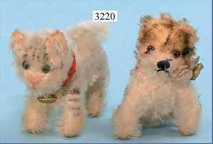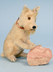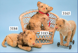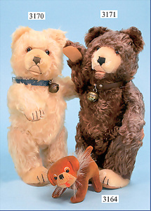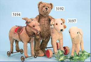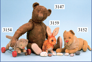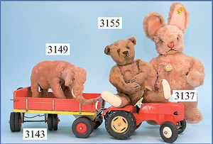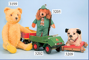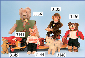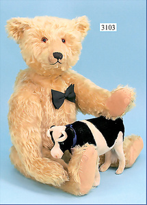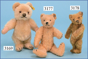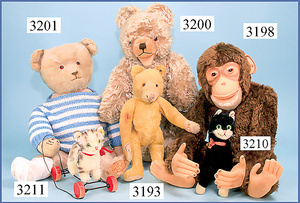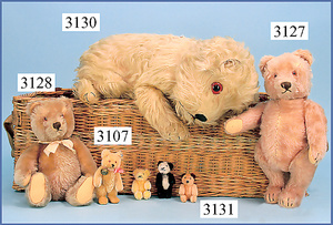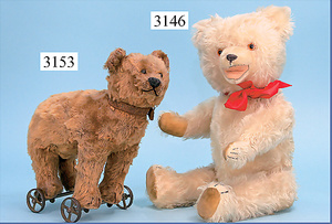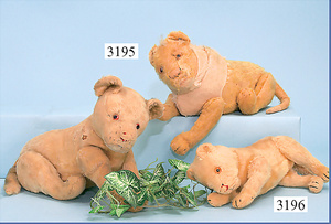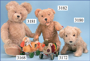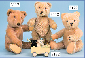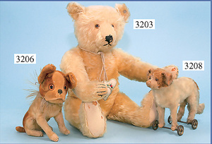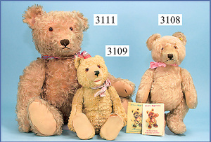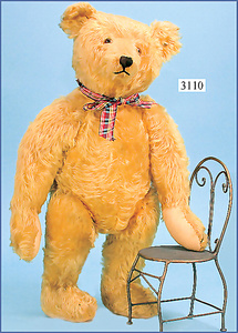 STEIFF Teddy, gelb, 1925, mit Knopf u. roter Fahne, Nr. 5326,1K, 30 cm, helle Nasenbestickung, etwas Mohairverlust, lange abgeknickte Arme, mit Kapokfüllung, dieser Teddy wurde ab 1926 bei STEIFF mit Hut u. Krause, als Teddy-Clown verkauft, sehr selten, Druckstimme defekt, schöner Ausdruck