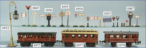 schönes Konv. Ersatzteile, Schilder, 2 Isolatoren, 1 Läutewerk defekt, einige Beleuchtungsteile, Kleinteile, Rungenstücke ( n. a. T. f. )