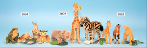 STEIFF, Konv., Okapi, mit Knopf, Schild u. Fahne, Giraffe mit Schild, Dromedar, nur mit Knopf, 13 - 17 cm