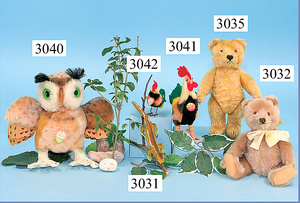STEIFF, 4 Teile, 1x Frosch, 1 Eule, Witti, mit Knopf, Schild u. Fahne, 1x Schildkröte Slo, mit Schild u. Knopf, 1x Känguru mit Schild u. Baby, 10 - 15 cm, guter Zust.