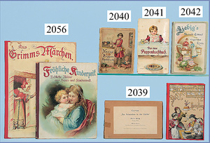 2 Bilderbücher, Fröhliche Kindheit, Liebliche Bilder aus Haus u. Kinderwelt, s/w Druck, sowie aus Grimms Märchen, 14 Zeiten, 1 Band wohl neuer
