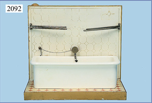 MÄRKLIN, Badewanne, Rückwand als Wasserbehälter mit Handtuchhalter, Einfüllschraube fehlt, 25 cm breit, bespielt, guter Zust.