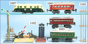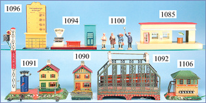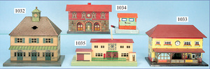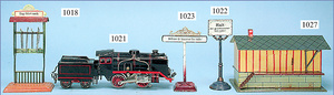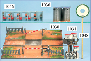 MÄRKLIN Expressannahme-Stelle, Häuschen mit Bank u. Waage, Blech, Grundplatte 20 x 10,5 cm, kl. altersbedingte Lackfehler, ein paar Spielspuren, sonst gut