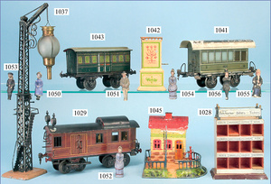 MÄRKLIN Spur 0, Schlepptenderlok B, elektr. Ausführung, stark bespielt, Lokomotive wurde nachträglich mit einer zusätzlichen Schaltung ausgestattet, dazu 1 Tender für Uhrwerklok, Personenwagen 17250, sowie einige Ersatzteile