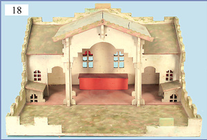 bäuerliche Puppenstube, ca. 1920, Schlafzimmer mit Küchenteil, 70 cm breit, 40 cm hoch, 47 cm tief, Holz-Möbel handbemalt, Tapete neuer, mit reichh. Zubehör