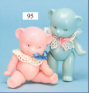 Porzellankopf-Puppe, gemarkt W Germany 10/0, blaue festeingesetzte Glasaugen, off. Mund, Zähne, Mohairperücke wohl neuer, auf Masse-Stehkörper, anmodellierte Schuhe u. Strümpfe, Körper Alter?, 22 cm
