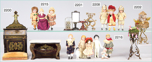 BOULE 3 Teile Schlafzimmer-Möbelprogramm, 1 Schrank, 16 cm, 1 Kommode mit Marmorplatte, 7,5 cm, 1 Bettchen, 12 cm, Orig.-Bettzeug, 1 Kewpie, guter Zust.