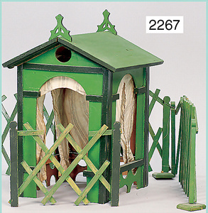 Baukasten, für 1 Faltgehäuse, sowie 2 Papier-Puppen, teilmontiert, Puppenstube, Schlafzimmer, ca. 1920, bunt lithogr. Deckbild, Kart. seitl. verschlissen, ausgefallen