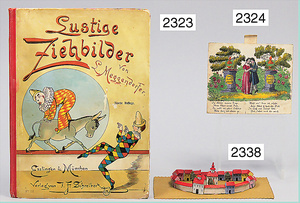 Bilderbuch, "Lustige Ziehbilder", von S. Meggendorf, Verlag Schreiber, 6 bewegl. Bildtafeln, Zust. 2-