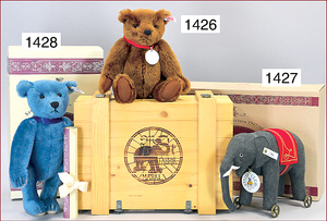 STEIFF 3 Teile, 1x Orig.-Teddy, neu, Nr. 030444, mit kl. Holzlaufstall, 1x Igel Joggi, weich gestopft, neu, Nr. 070556, 1x kl. lachender Esel, fest gestopft