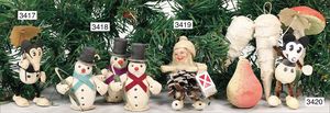 3 Teile Christbaumschmuck, Watte-Schneemänner, mit Zylinder und Regenschirm, 7 cm, schönes Konv.