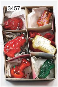 Konv. Weihnachtsschmuck, leonische Drähte, Glas, Watte, Oblatenbilder, ca. 12 Teile, schönes Konv.