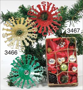 Christbaumschmuck, Federbaum auf Pappdose montiert, mit Kerzen, 24 cm Höhe, dazu Spiegelglaskugeln im Kart.