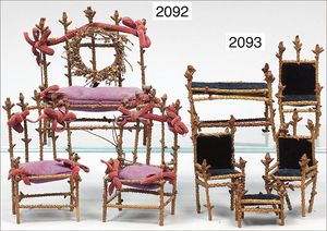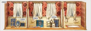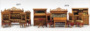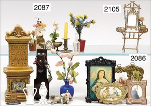 Konv. Schlafzimmer-Möbelprogramm, 1 x Schrank, 2-türig, verspiegelt, 10 cm breit, 1 x kl. Schminkschränkchen, 5 cm breit, 6 Schubladen, Marmorplatte, kl. Spiegel, dazu passend 1 Kommode, mit 3 Schubladen, 1 Knauf fehlt, 5 cm breit, mit Marmorplatte, 2 Holzbetten, 12 cm lang, Spiegel, 22 cm hoch, mit Marmorplatte, 9 cm breit, schönes Konv., 1 Nachttisch, Marmorplatte beschädigt