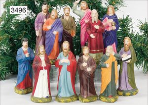 ERZGEBIRGE Jesus und seine Jünger, 13 Figuren, Pappmaché, Pyramiden- o. Weihnachtsdeko, in orig. Verp., Höhe Figuren ca. 10 cm, Verp. etwas eingerissen, um 1920