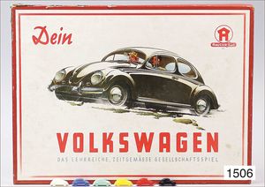 HAUSSER, games, No. 150, "Dein Volkswagen", das lehrreiche zeitgemäße Gesellschaftsspiel"", board game with figures and game guidance, in original box, good condition, box is at edge a little bit worn