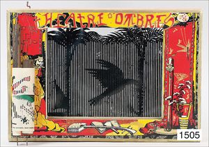 shadow play, "Theatre ombres", original box, with game guidance and paper rolls, 43 cm by 29.5 cm, probably before 1900, nice original condition