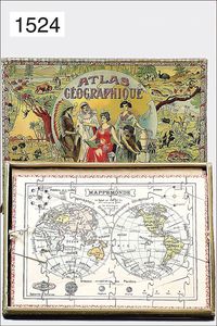 game, puzzle, "Atlas Géographique", around 1900, 5 boards, original box with multicolored lithographed cover, picture, 35 cm by 27 cm