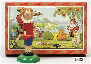 LILIPUT, game, "Willhelm Tell", shooting game with figure, multicolored lithographed original box, 21 cm by 13.5 cm, nice original condition