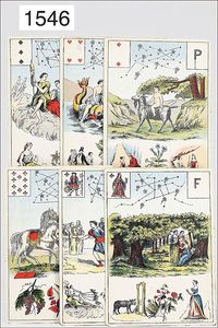 fortune telling game, 42 card, big format, 9 cm by 12.8 cm, around 1900, unusual, good condition