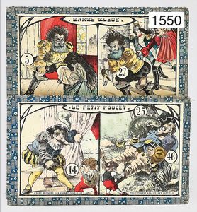 "Jeu de Loto enfantin", numbers game, with caricature figures, probably as far as possible complete, without game guidance, around 1900, France