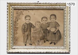 pencil drawing, J. C. Barths, representation of children, 1865, from a courtly household, family Dollfuss, von Vockersberg, probably the children of the family Dollfuss, 29 cm by 36 cm, framed, a bit moldy