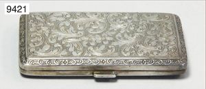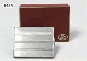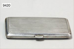 Zigarrettendose TIFFANY & Co.STERLING 14 k (gepunzt),Amerikanisches Art-Deco,14 k Goldverziehrung mit 3 Princess Saphieren,original Lederetuit, gesamt ca 122 g,leichte Gebrauchsspuren