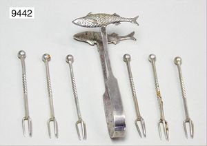 7 gemischte Fleischgabeln, Silber 800/000 ( 4 mit Metallzinken und kitgefüllt ), gesamt ca. 244 g
