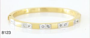 Armreif (Goldschmiedearbeit), PT 950/000 mit zwei Goldnieten, 65mm Durchmesser