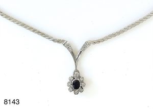 Collier, GG 585/000, mit 3 Brillanten, 0,10 ct & 2 mal 0,06 ct, weiß/SI, ca. 42 cm