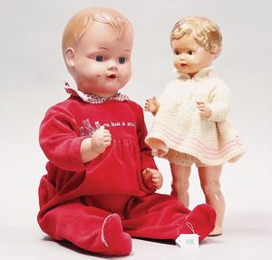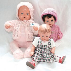 Konv. 3 Kunststoff-Puppen, 1x Schildkröt Strampelchen, gem. 45, mit Stimme, 1x Schildkröt, gem. 34, 1 Baby, ungem., mit Stimme, 35 cm