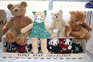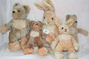 Konv. 5 Plüschtiere, meist Bären, Hermann, Sankit und Unicef, dazu 7 Teddys, Teddybärenkollektion, handmade Bears, 22 cm, orig. verpackt
